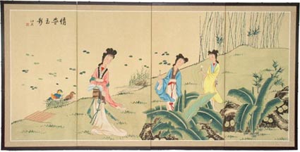 Hand Painted Chinese silk screens -produced individually by age old craftsman in Keeping with the tradition handed down over generations. Each screen can fold in 4 sections, thus allowing you to position or stand the screen in many different ways. Our Chinese hand painted silk screen provide an inexpensive way to decorate your home with original wall art.